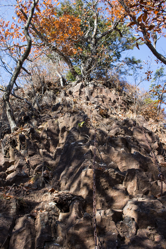 鎖が無ければ登頂は無理であろう、岩のてっぺん