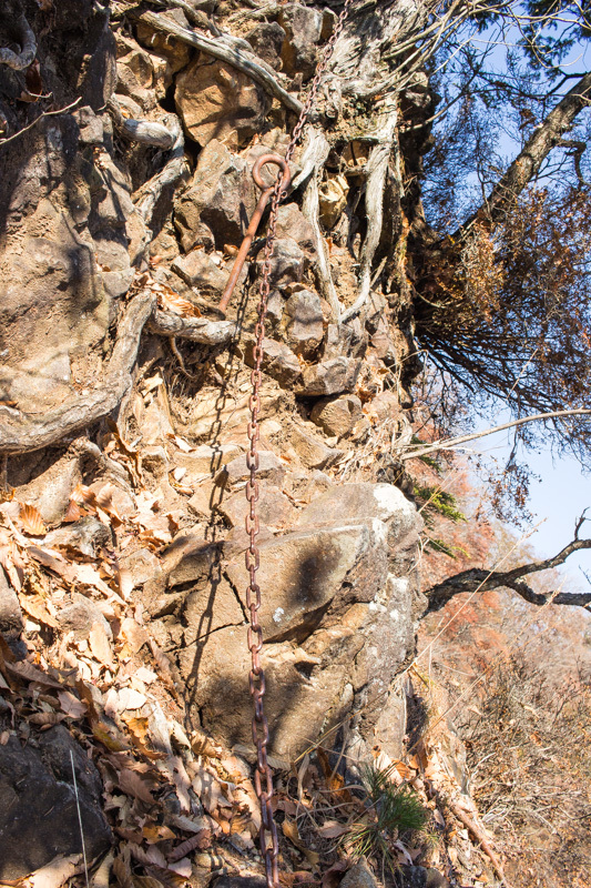 東峰への岸壁のバンドに比べれば、軽いクサリ場