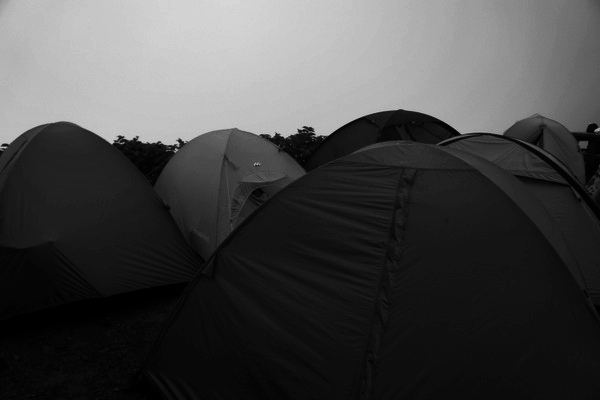 この状況で雨でズブ濡れの重いテントを撤収するのに非常に苦労する