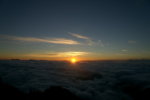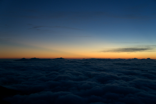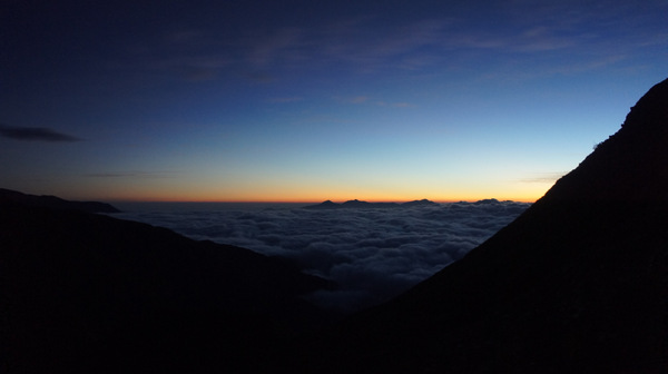 出発前に小屋前から朝焼けを一目見ようとして、わらわら集まった人ごみを抜け