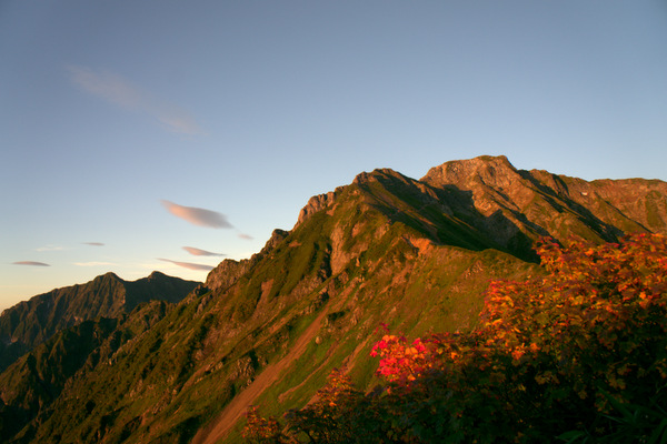 朝焼け燃ゆる五竜岳 八方尾根から遠見尾根(後)