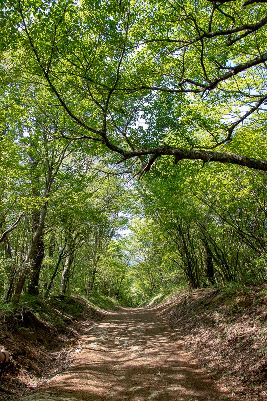 林道ゲートを超えると、そこはもう木漏れ日の路