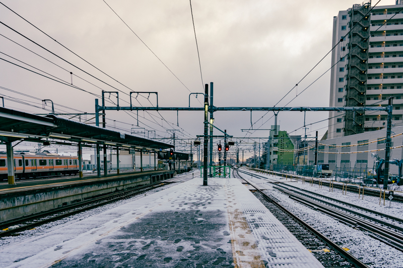 駅のホームはうっすらと雪があり、こりゃ期待できるなと確信