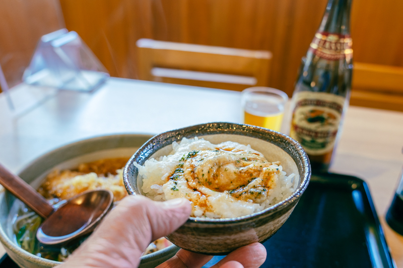 もちろん瓶ビールにとろろ飯付けて