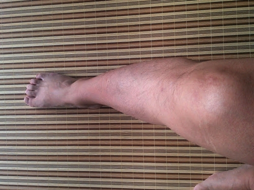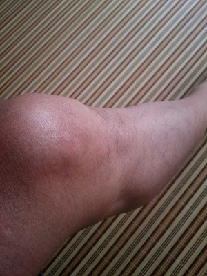 靭帯の炎症からくる痛みで、水が溜まっていて腫れているようだ