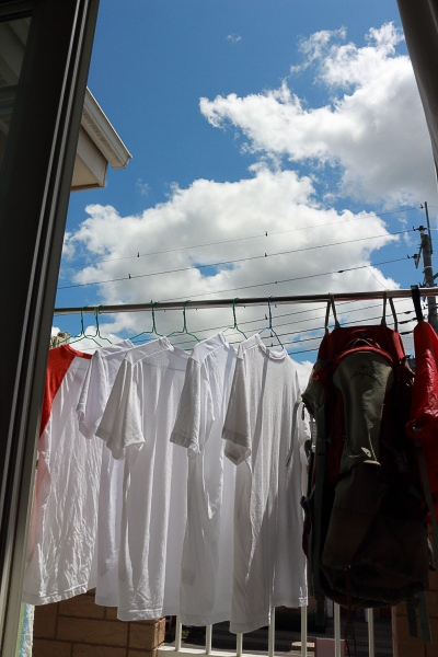 梅雨の中休みの晴天の下、することも無く行くところも無く、ザックまでお洗濯