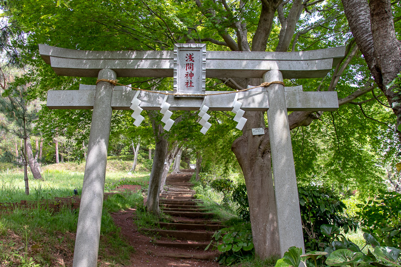 葉桜の木漏れ日も眩い浅間神社の参道を過ぎると