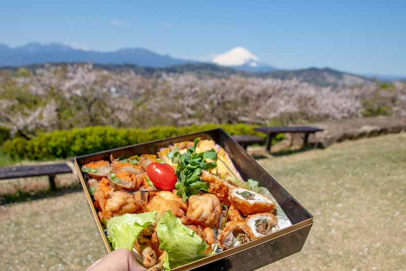 富士山を背景に、桜と菜の花が咲く、展望の良い里山があった