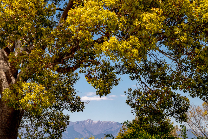 三角点を北へ向くと、まだ山頂が少しだけ白い丹沢山地