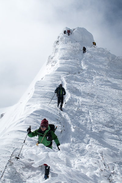 剣ヶ峰の稜線に上がるとやっと一息、ここでアイゼンに切り替える