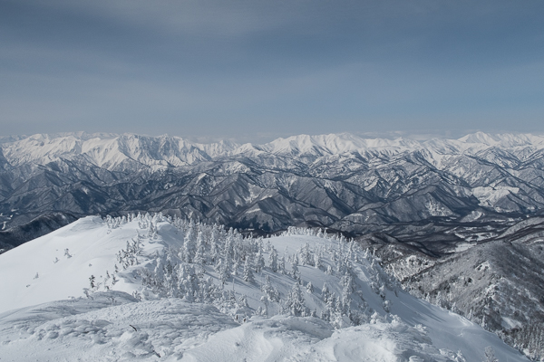 その季節らしく少し霞んだ空には、雪雲と青空と、そして上越、尾瀬の山々