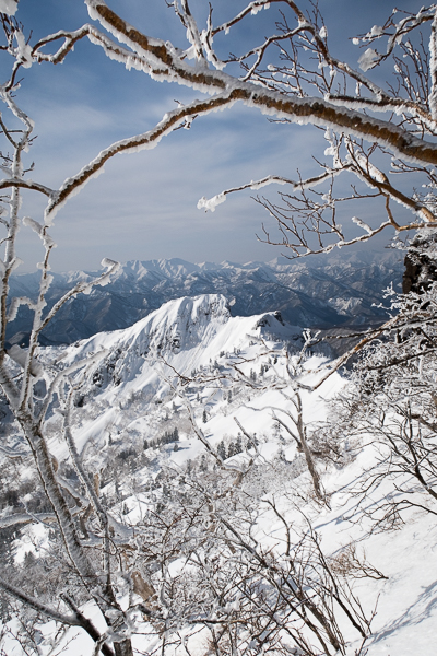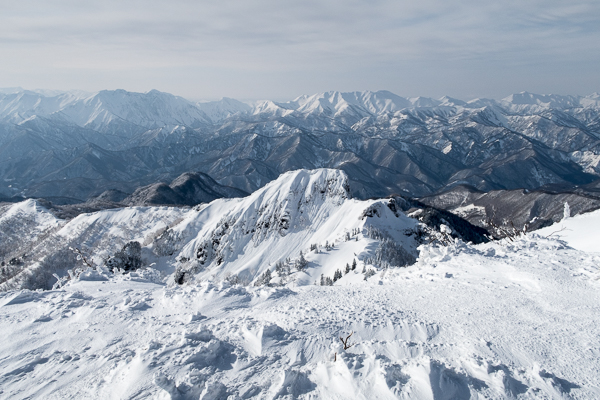 足元は細尾根、ちょいとでも踏み外すと、東も西も切り立った斜面だ