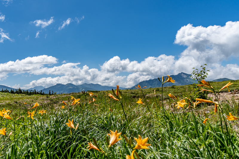 いつも脚を止める薬師平にはもう枯れてしまいそうなキスゲが揺れる