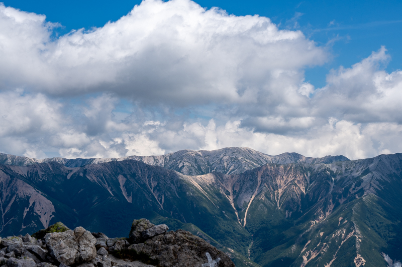 やっと登頂すると赤牛方向は今まさに夏雲が沸き上がるところ
