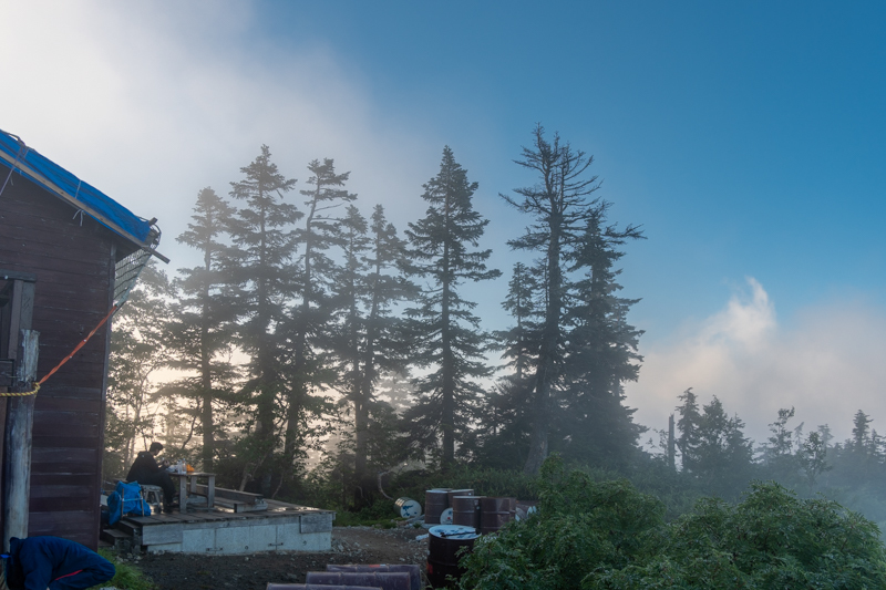 ガスの中をとぼとぼ歩き続け、スゴ乗越小屋への到着は16時