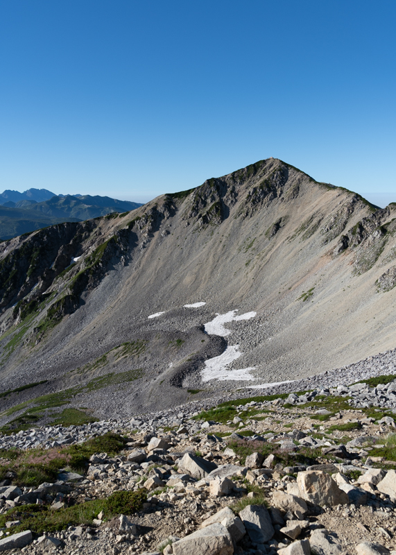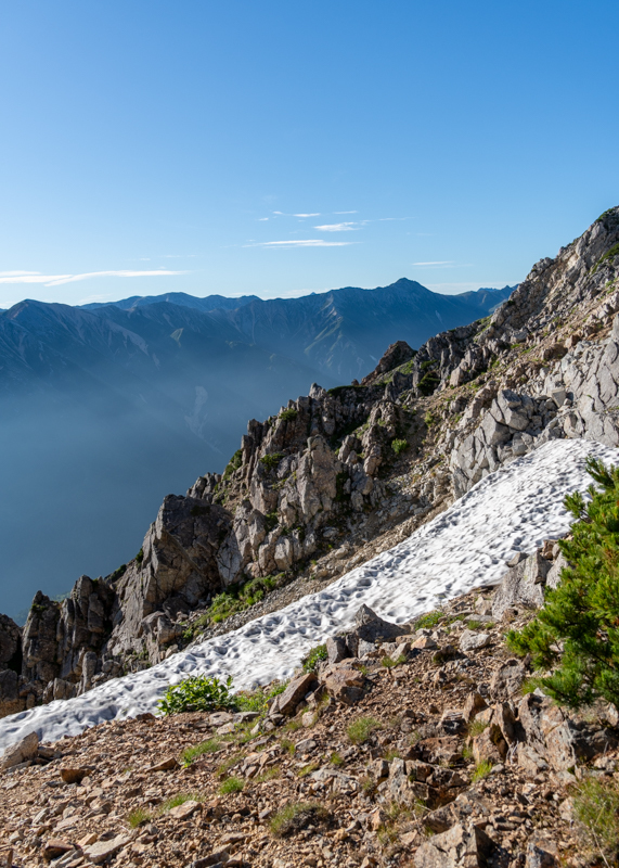 カールにも、岩肌にも、もっと厚い雪が残っていた