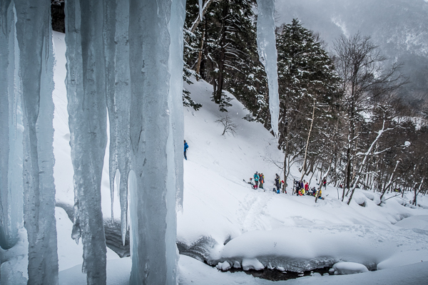 人知れず凍り付いた滝が、碧く輝いている姿は