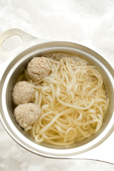 下って行く人たち皆が、不思議そうに観る中うどんを茹でる