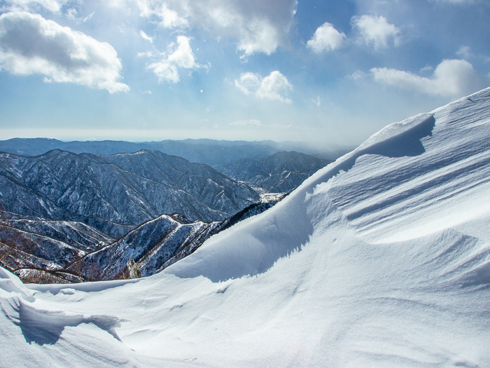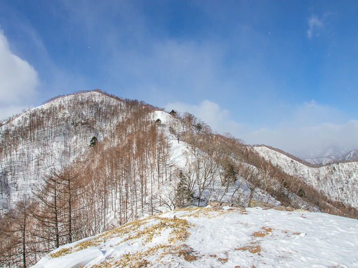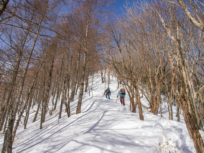 ふぅふぅ息を吐きながら尾根に乗っかると、ペアはもうその先をわしわしと進んでいる