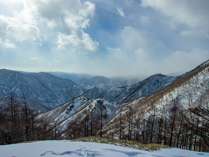 望めるはずの皇海山、日光白根山、上越の山並みは雪雲で霞んで見えない