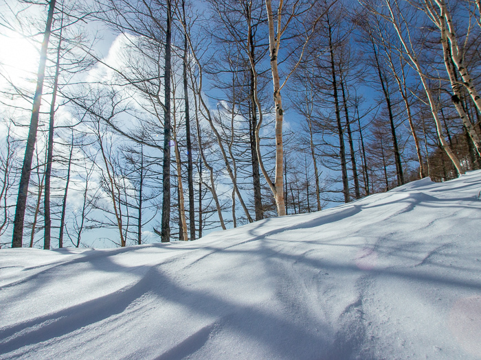 足元の雪は浅く、単に登りに疲れてるだけの自分にあきれながらスローに歩く