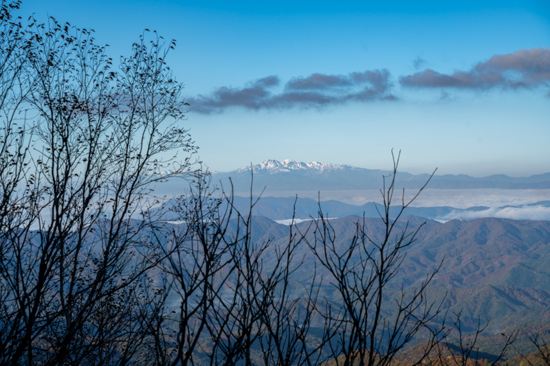 寺地山のピークを越え、樹林の窓を開けると