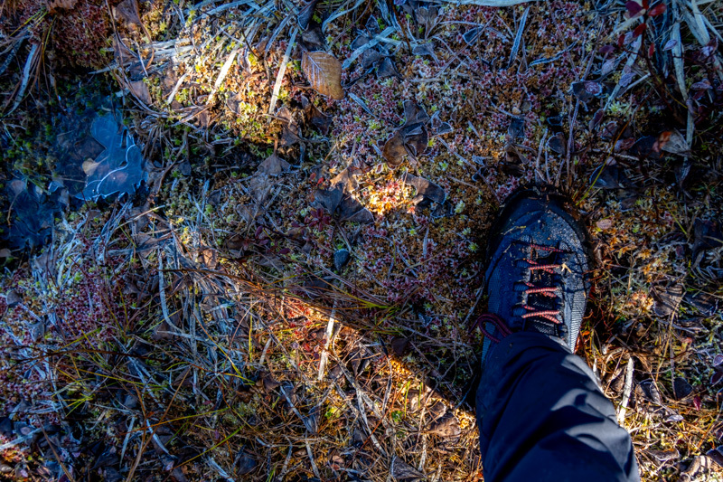 朝霜が溶け落ちてトレイルはどんどん濡れ始め