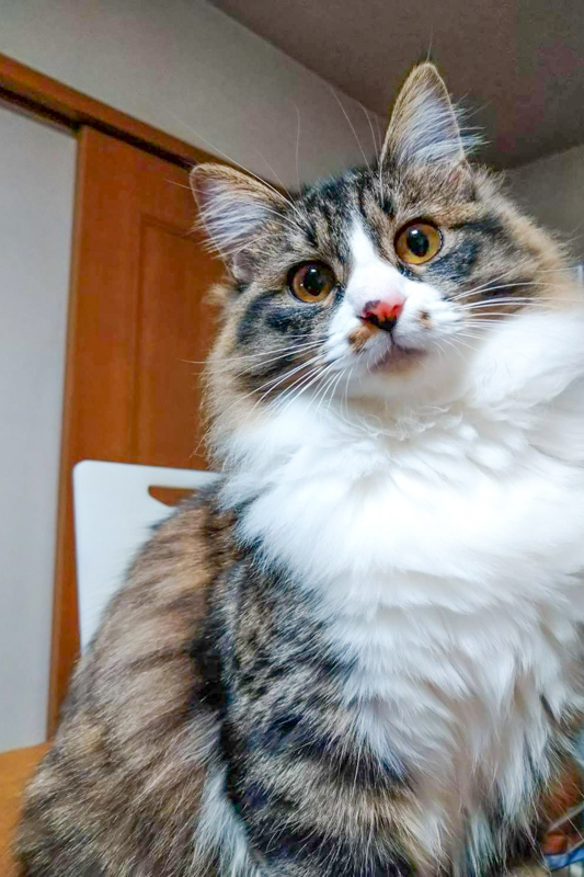 喉元からの白い毛は、まるで綿毛のようにふわっふわ