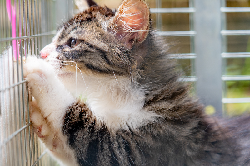 キャリータイプのケージに、このお転婆娘を移してやる大仕事だ
