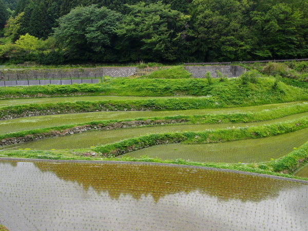 峠を越える手前から、棚田が広がり、土と水の懐かしい香りが胸いっぱいに広がる