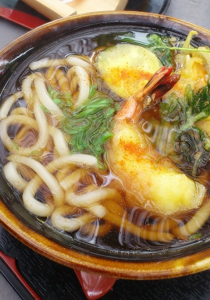 悔し紛れにオーダーした天ぷらうどん、ヴィジュアル的には最高だけどちょっとヌルい
