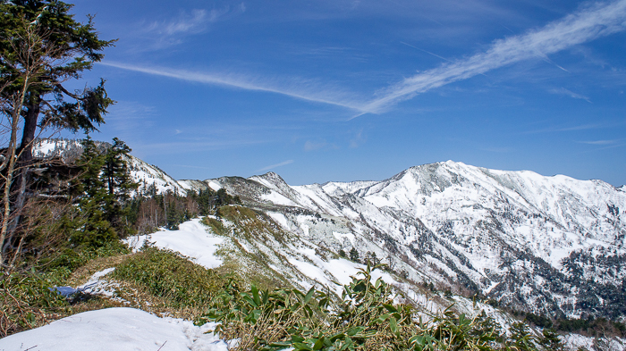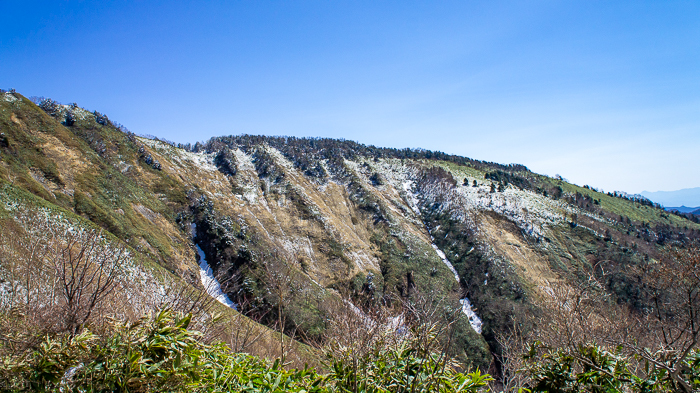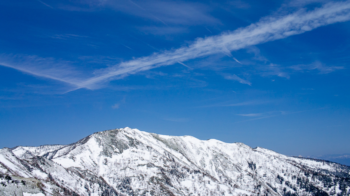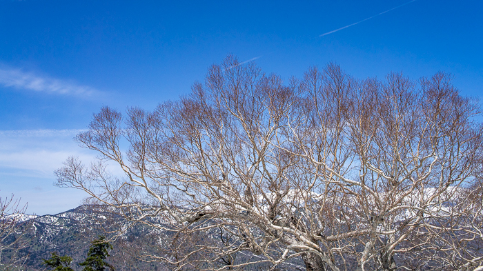 何故、あの山だけあそこまで雪が多いのだろうか、振り返る浅間山はもう白くないのに