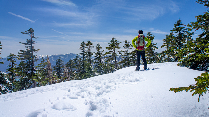 トレイルはピークから北東へ進み、湖畔のキャンプ場へ下る分岐を過ぎると突然視界が広がる
