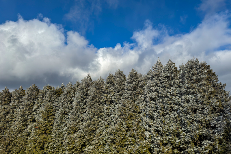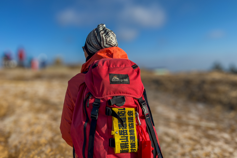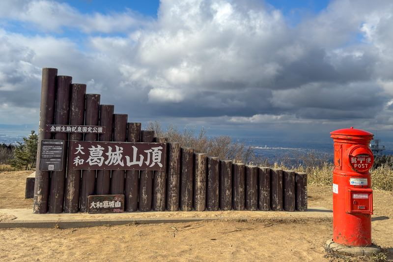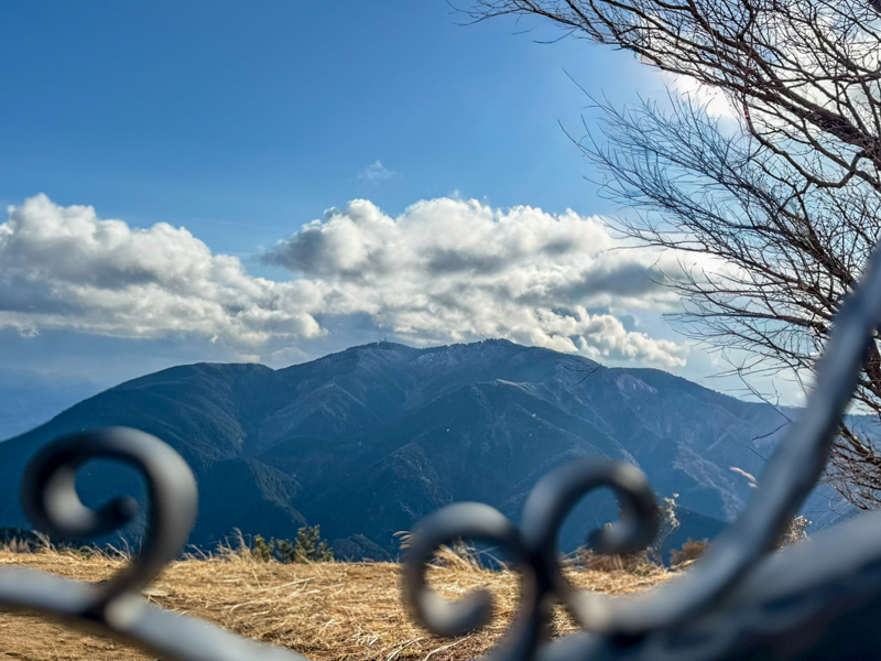 山頂は青空が広がり、小雪が舞っていた近鉄の駅のホームに立っているよりも暖かく