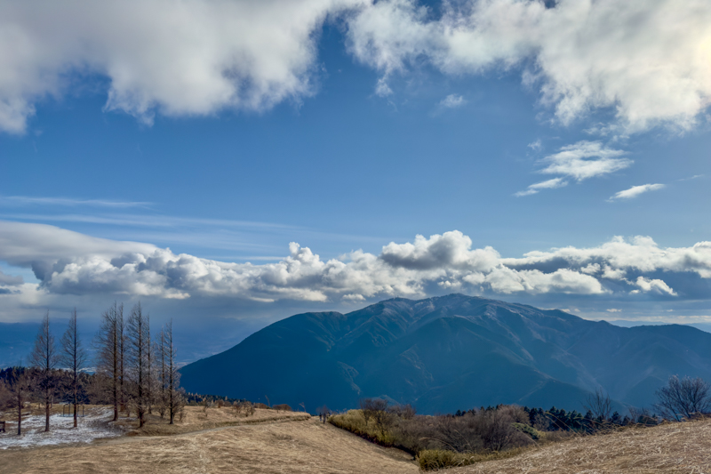 山頂にわずかしか雪のない、寂しい金剛山を横目に