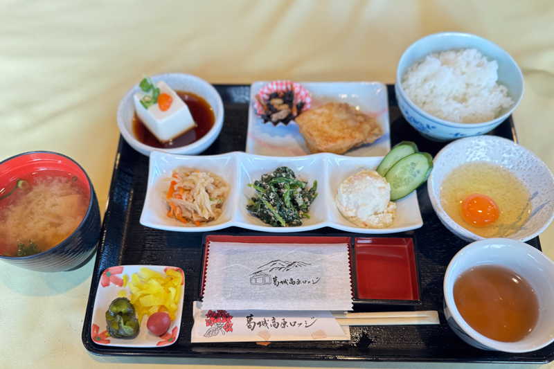 朝陽を受ける金剛山の姿を拝みながら、みんなで朝食をいただいて