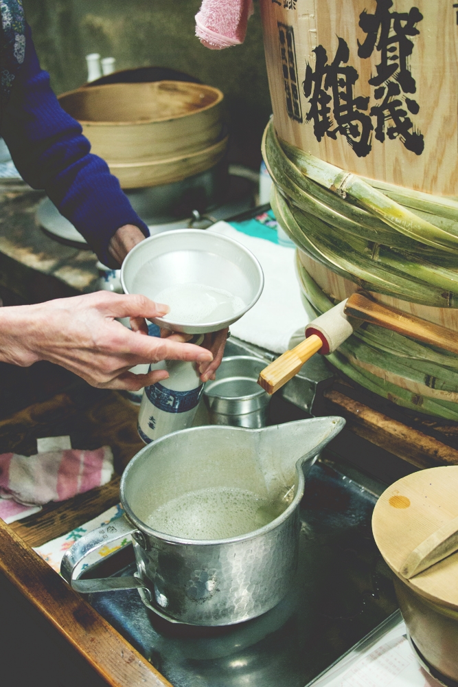 女将さんが、丁寧に、やさしく、アルマイトの鍋に燗付けてくれる