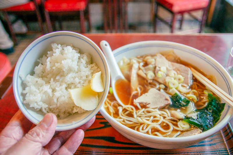看板娘(推定85歳)は、麺類に付く小ライスを
