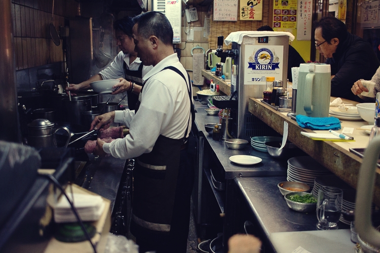 寡黙な職人が、上を通る電車に負けない音を立て鍋を振る