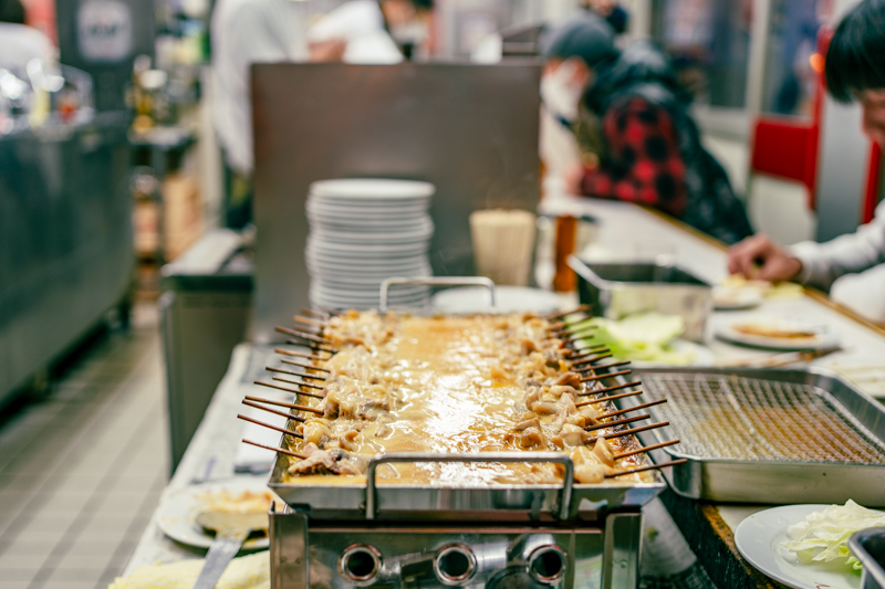 立ち食いうどん、たこ焼き屋、ホルモン焼き、そして串カツ