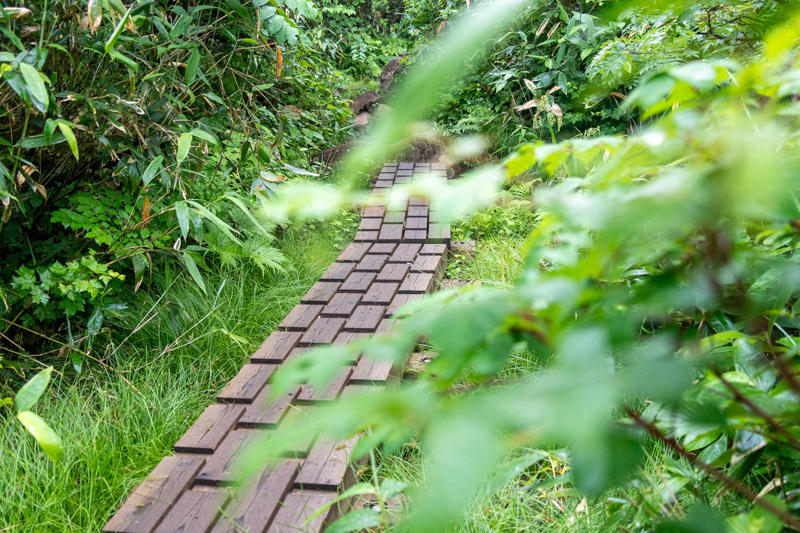 木道は湿原からゆるやかに登りながら、もう一度森の中へと入る