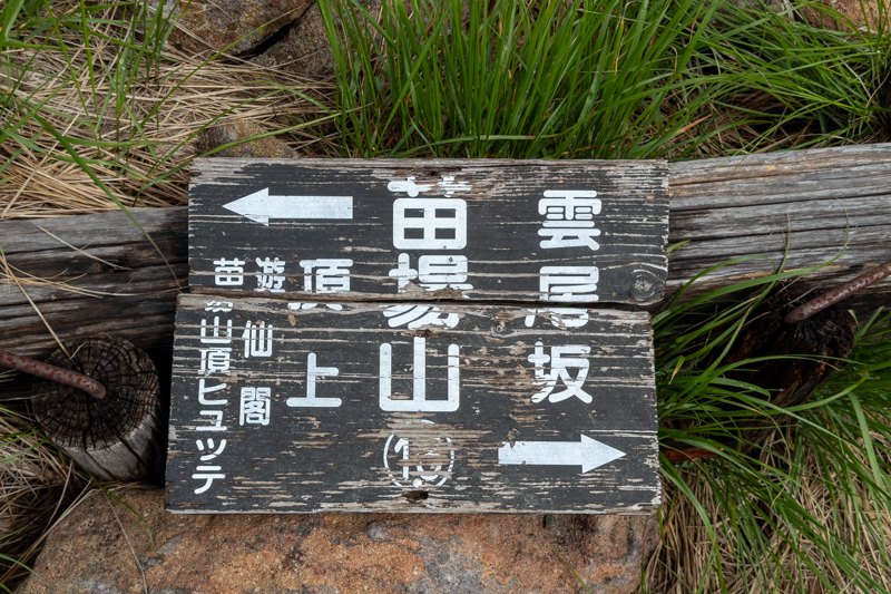 すぐに四合目となり、突然現れる木道で、見事なまでにずっこけて