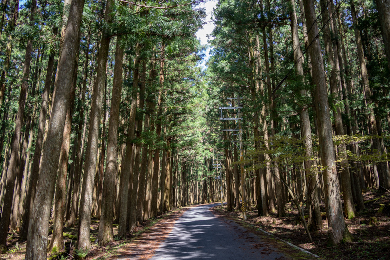懐かしみながらの散策も終えてバス停のベンチに座っていると林道から人の気配
