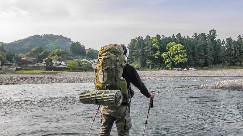 山靴をザックに収め、対岸の大斎原に向かって手を合わせる