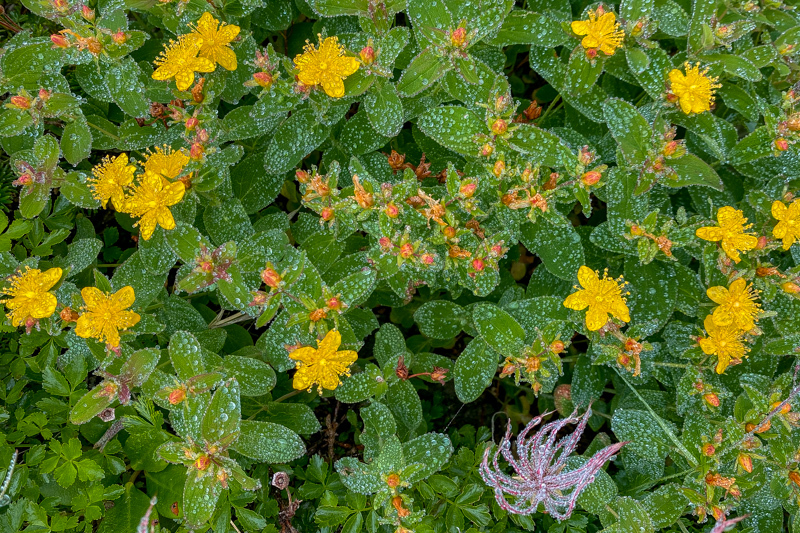 可愛い花たちが小雨に濡れて揺れている中を黙々と登り詰める