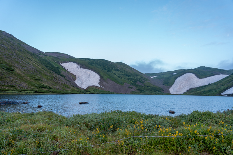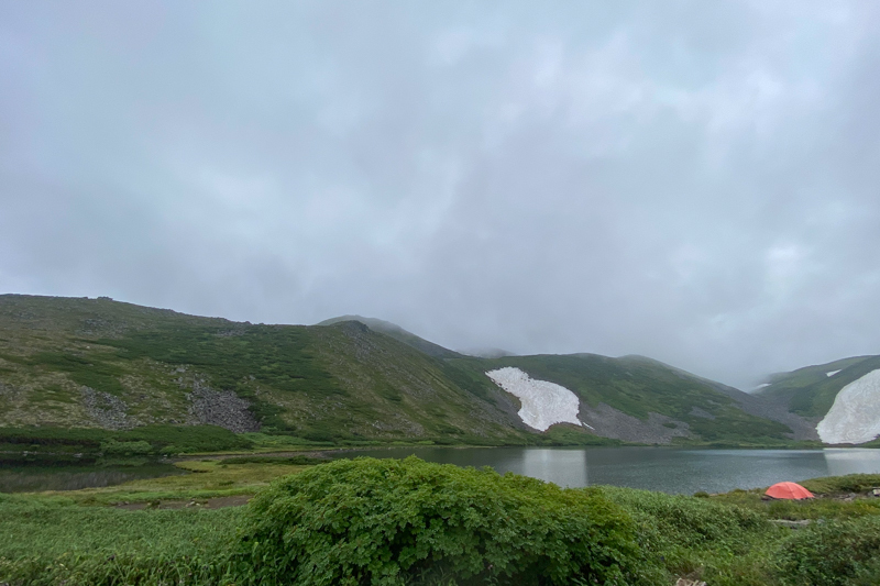 4時に起きて準備を整える、外は予報に反して晴れ間が覗いている湖畔の木道をルートとは逆方向に歩いて景色を眺めていると突然エゾジカの群れが飛び跳ねた朝靄の中、大きな声で警戒しながら湿原を飛ぶ姿は、ただただ神々しく
