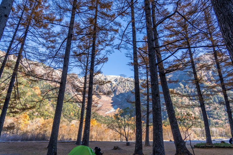 晩秋の小梨平キャンプ、そして嘉門次小屋で岩魚と骨酒だ