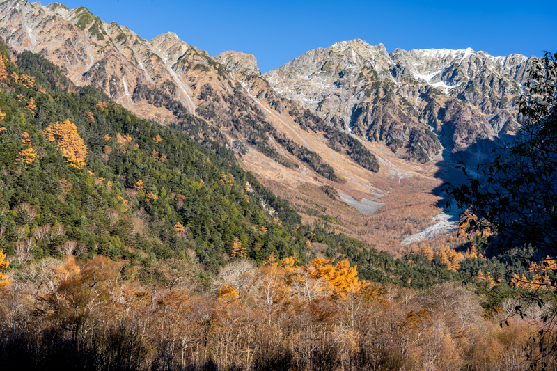 今年の秋、北穂に登ろうと上高地BTから右岸を歩きました。