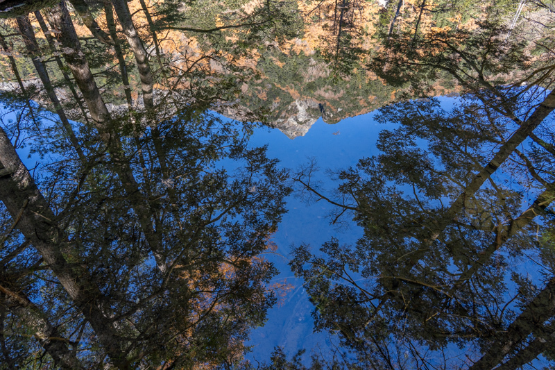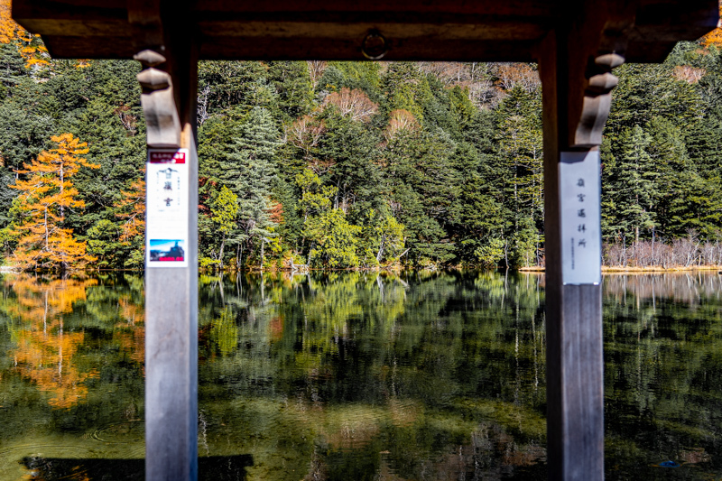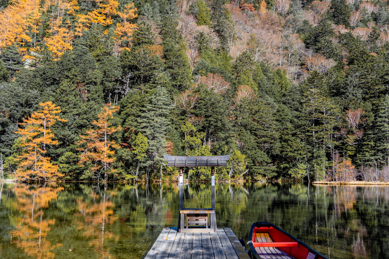 その神秘的な明神池の湖面には、やはり明神岳の鋭鋒が映える