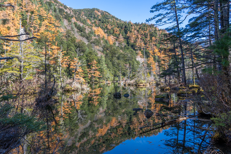 それでも大正池から田代池、梓川ルートを歩き進めると